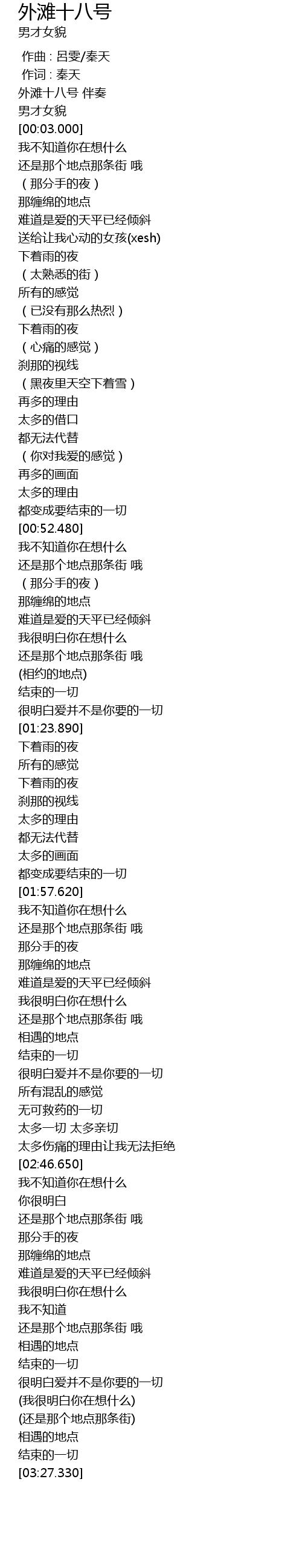| [00:01.320] | wài tān shí bā hào bàn zòu |