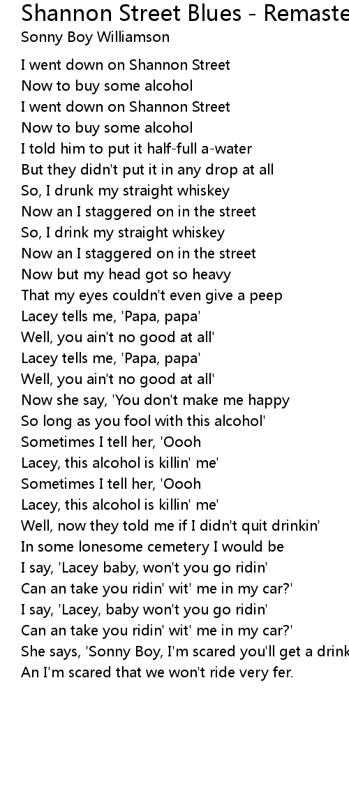 She says, 'Sonny Boy, I'm scared you'll get a drink a-whiskey |