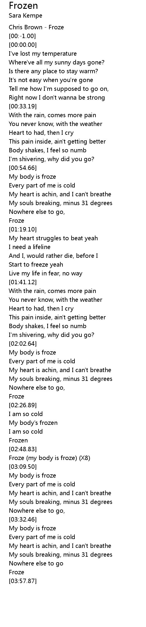 Froze (my body is froze) (X8) |