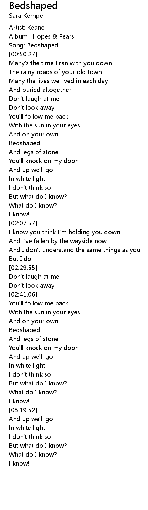 Song: Bedshaped |