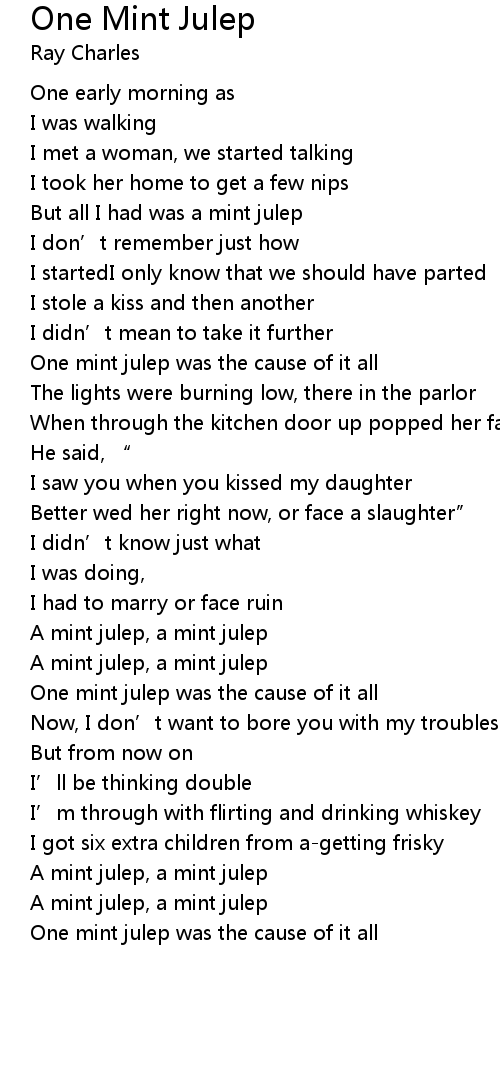 | Song | One Mint Julep |