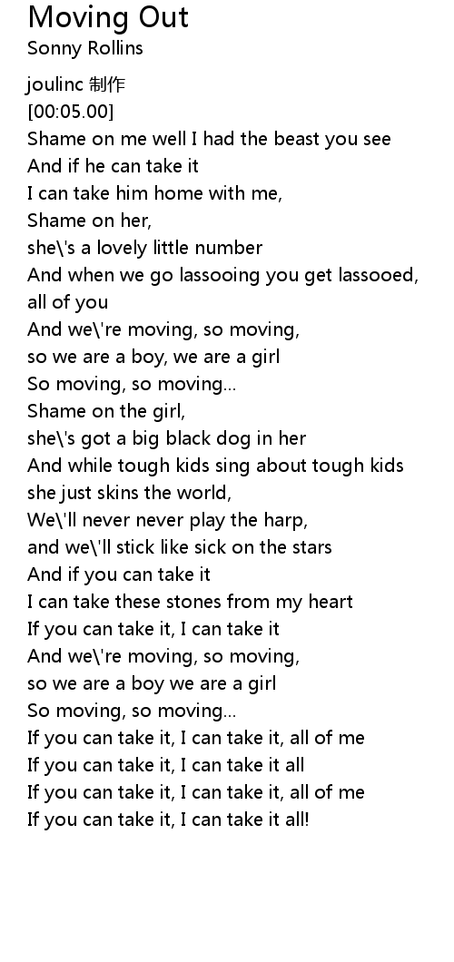 | [02:33.00] | If you can take it, I can take it, all of me |