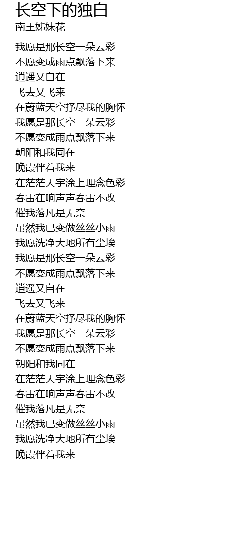 | [02:42.130] | 我愿是那长空一朵云彩 |