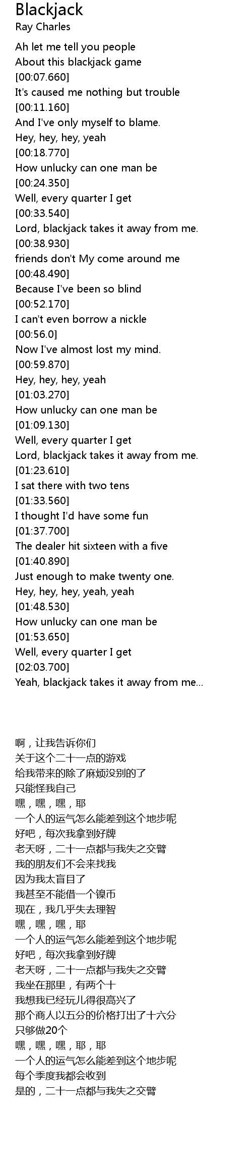 | [00:34.470] | Lord, blackjack takes it away from me. |
