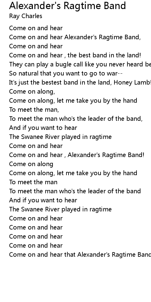 Come on and hear Alexander's Ragtime Band, |