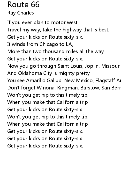 Get your kicks on Route sixty-six. |