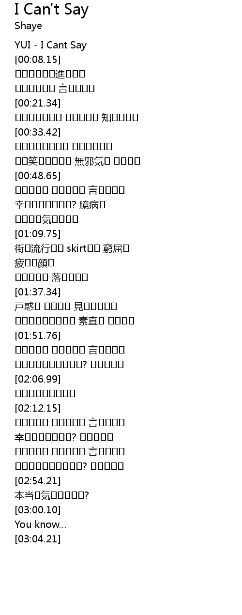 | [00:01.25] | YUI - I Cant Say |