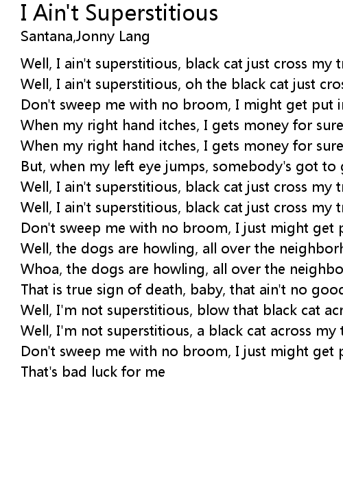 Well, I ain't superstitious, oh the black cat just cross my trail