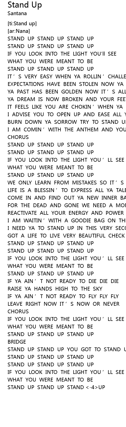 | [00:42.57] | STAND UP STAND UP STAND UP |