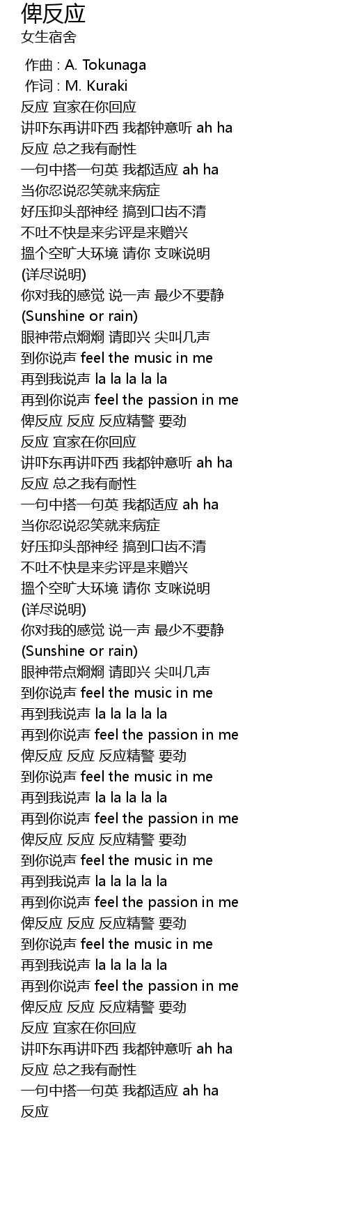 | [01:03.969] | 到你说声 feel the music in me |