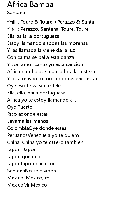 | 作词 : Perazzo, Santana, Toure, Toure | |