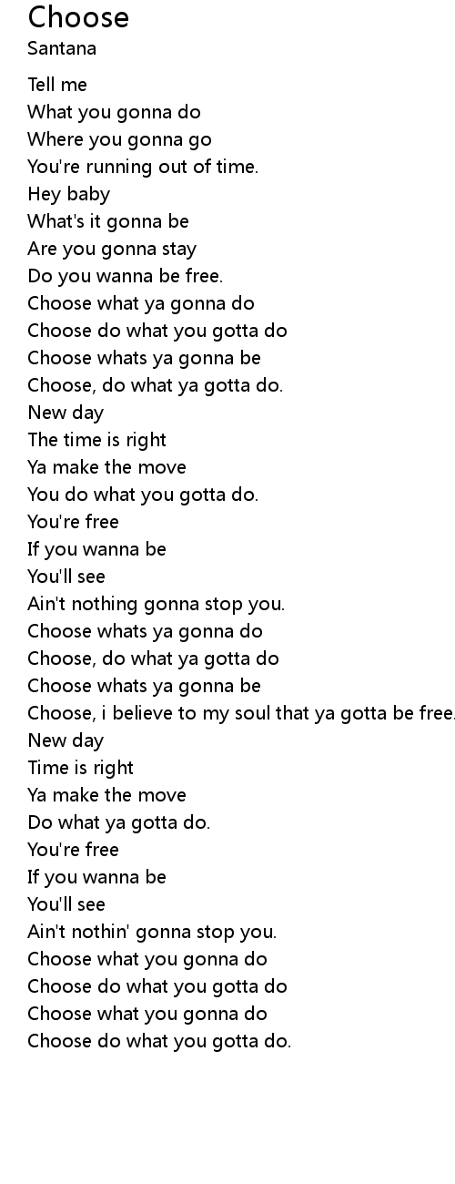 Choose, i believe to my soul that ya gotta be free. |