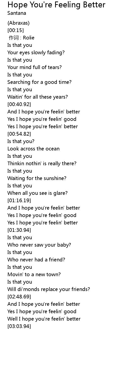 | [00:51.82] | Yes I hope you' re feelin' better |