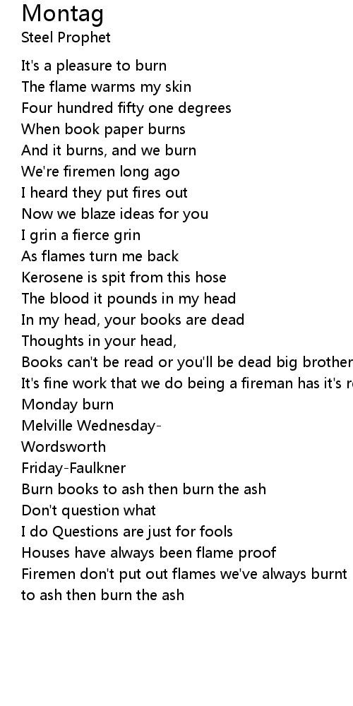 Firemen don't put out flames we've always burnt books everyone knows burn books to ash then burn the ash |