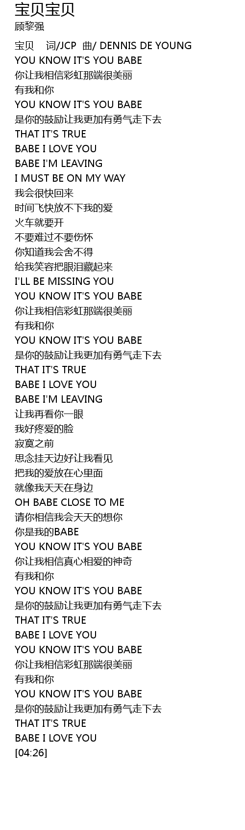 | [00:00] | 宝贝 词/JCP 曲/ DENNIS DE YOUNG |