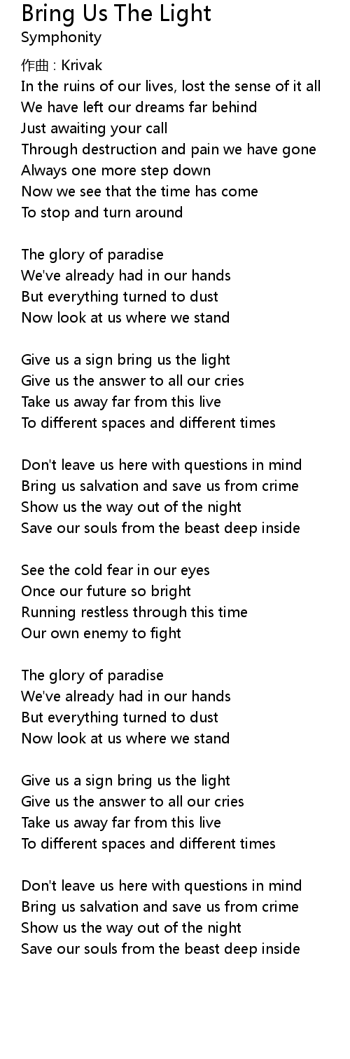 | Give us a sign bring us the light | |
