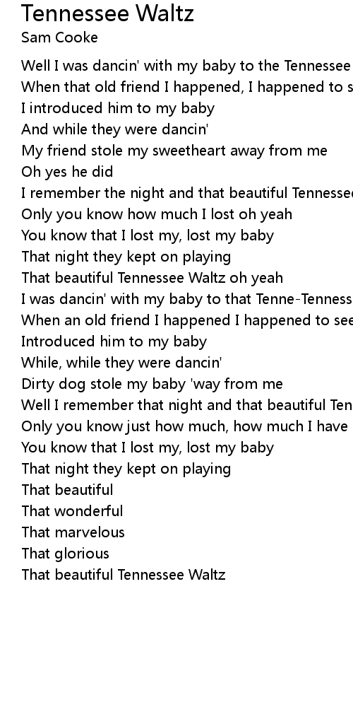 I was dancin' with my baby to that Tenne-Tennessee Waltz |