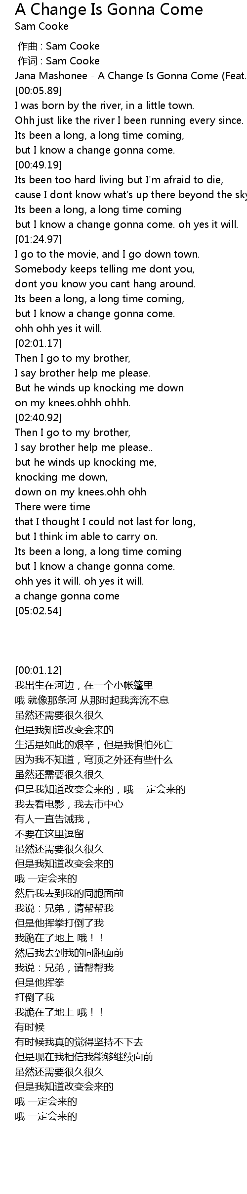 | [00:01.12] | Jana Mashonee A Change Is Gonna Come Feat. Derek Miller |