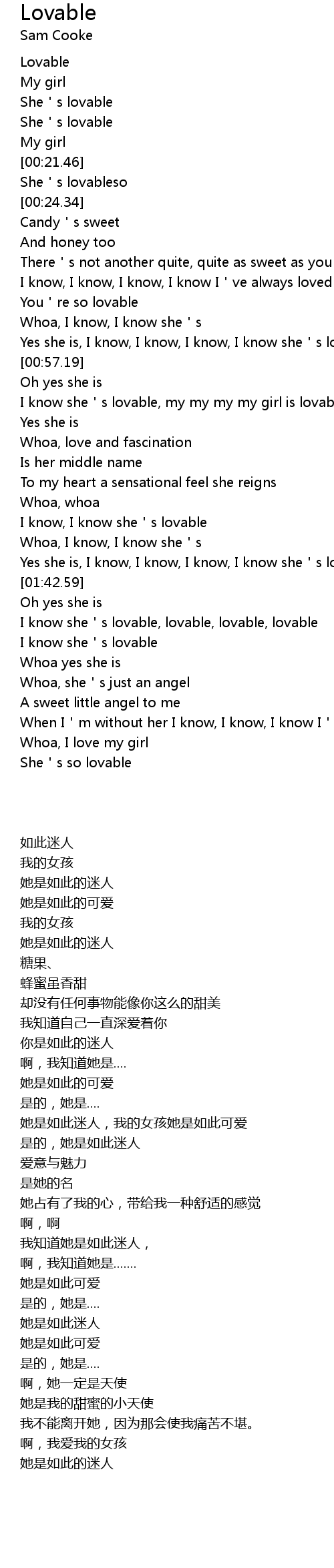 | [01:45.87] | I know she s lovable, lovable, lovable, lovable |