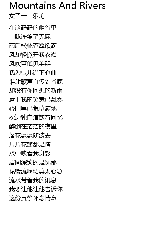 | Song | Mountains And Rivers |