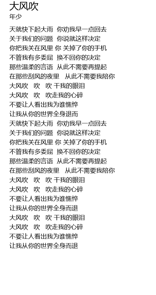 | [03:02.45] | 大风吹 吹 吹 干我的眼泪 |