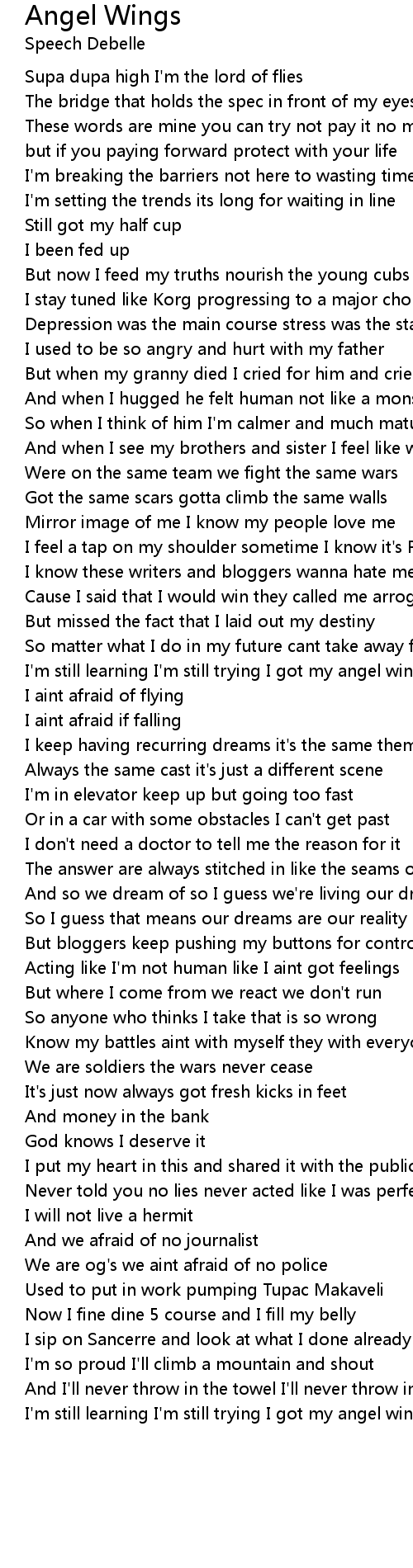 I'm still learning I'm still trying I got my angel wings I aint afraid of flying
