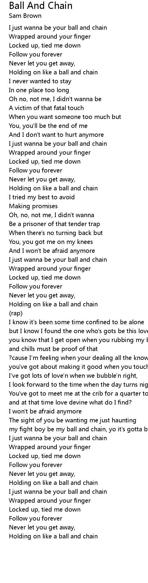 | my fight boy be my ball and chain, yo it's gotta be right | |