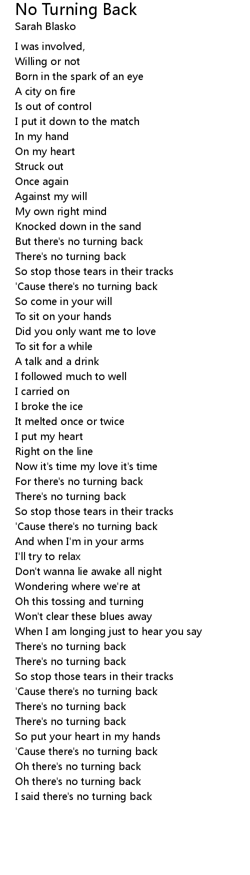 Oh there's no turning back |