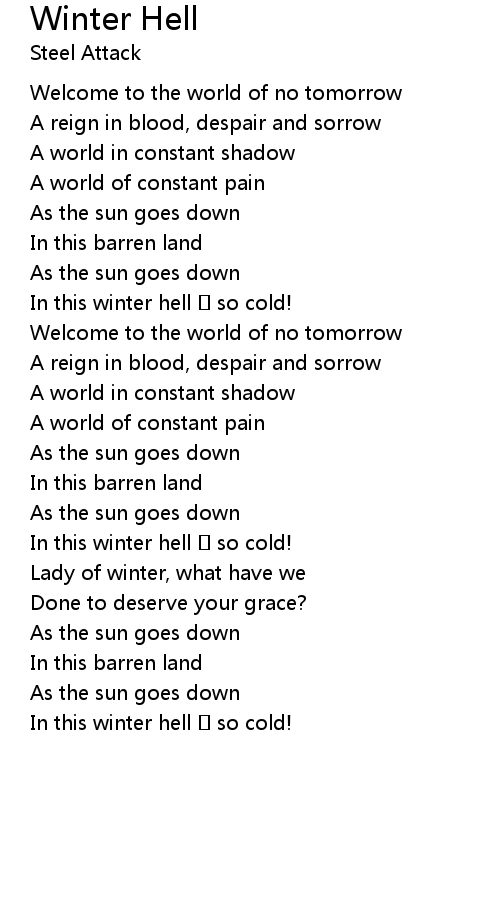 | In this winter hell so cold! | |