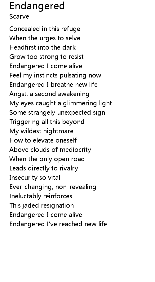 Endangered I come alive |