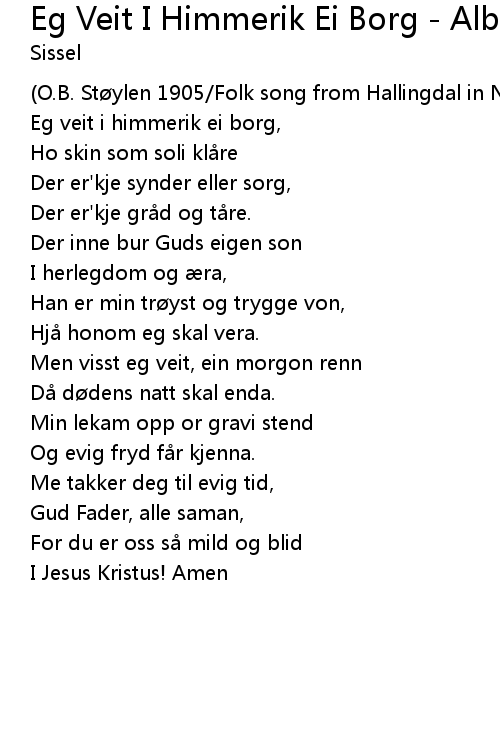 | Song | Eg Veit I Himmerik Ei Borg - Album Version |