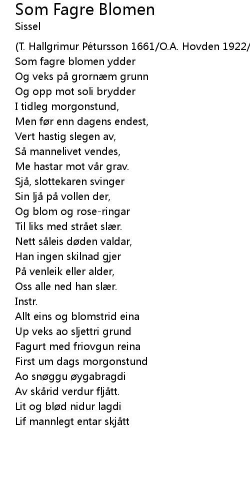 | (T. Hallgrimur Pétursson 1661/O.A. Hovden 1922/M. Hans Thomissøn 1569) | |