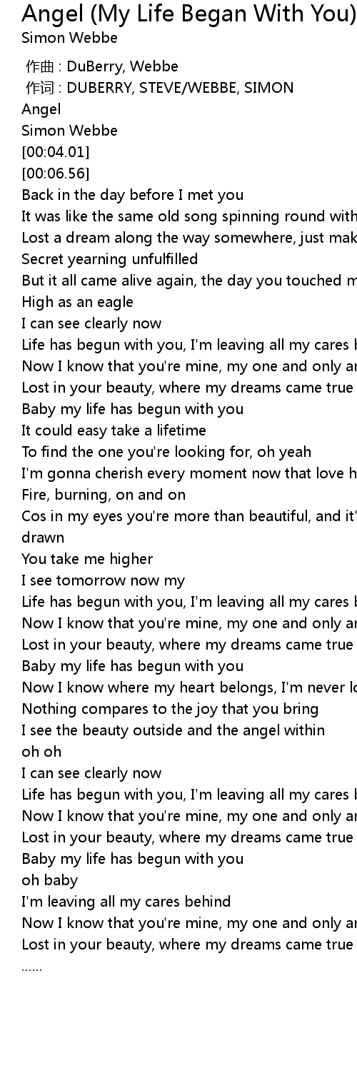 | [00:48.92] | Life has begun with you, I'm leaving all my cares behind |
