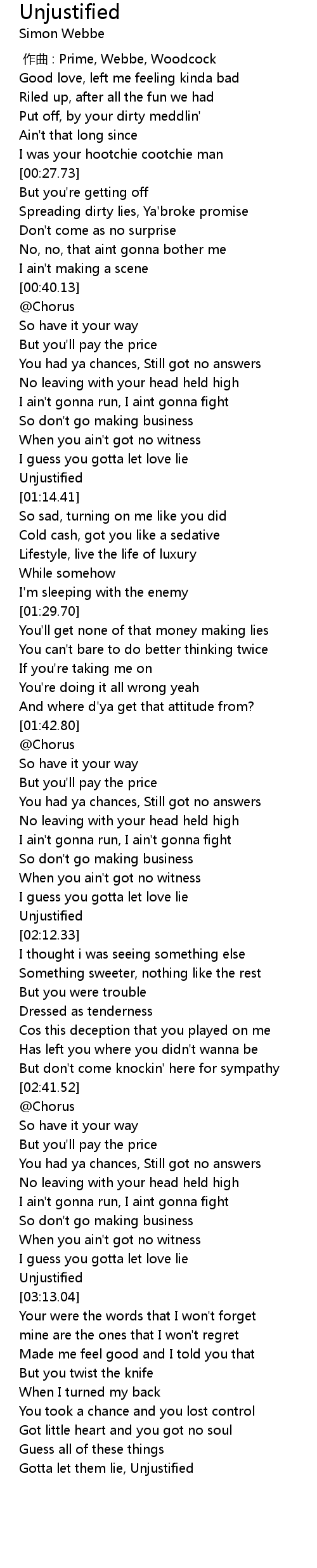 | [03:36.35] | Gotta let them lie, Unjustified |