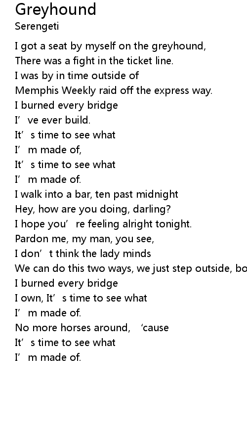 | I got a seat by myself on the greyhound, | |