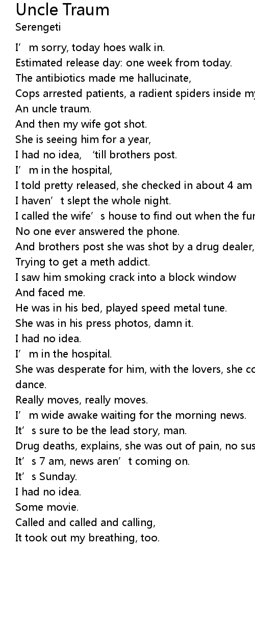 | Cops arrested patients, a radient spiders inside my arms | |