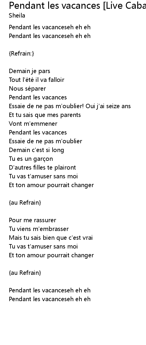 | Song | Pendant les vacances [Live Cabaret Sauvage 2006-2007] |