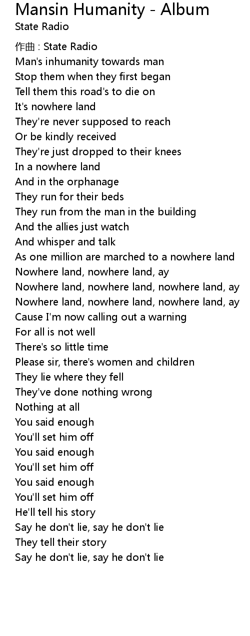 | Nowhere land, nowhere land, ay | |