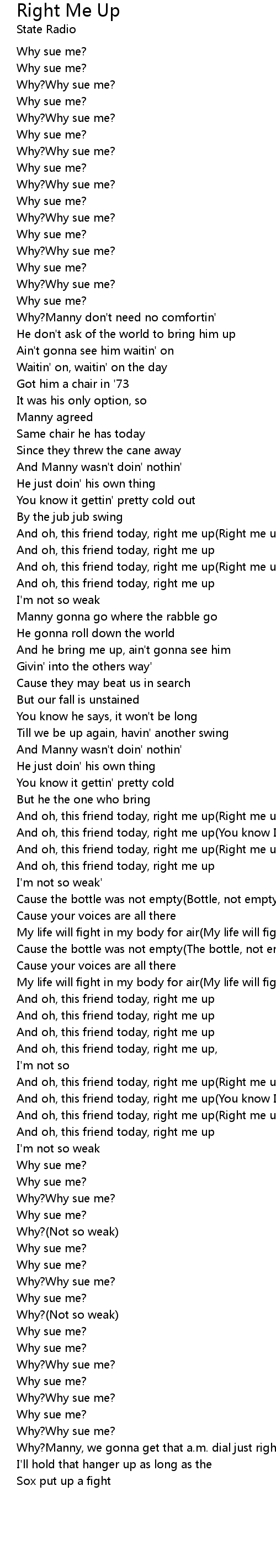 And oh, this friend today, right me up(Right me up) |