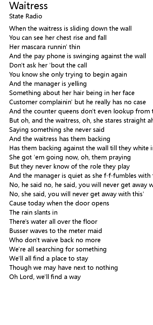 But oh, and the waitress, oh, she stares straight ahead |