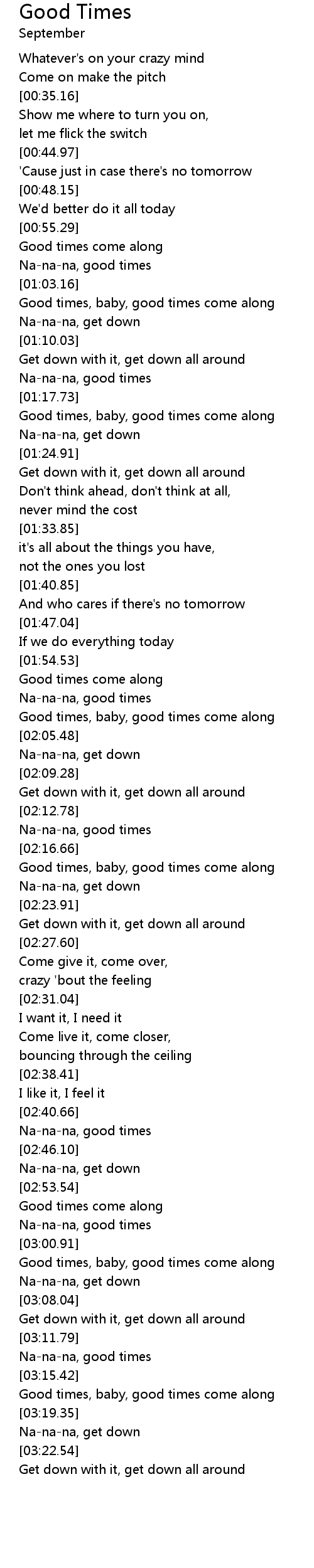| [03:16.29] | Good times, baby, good times come along |