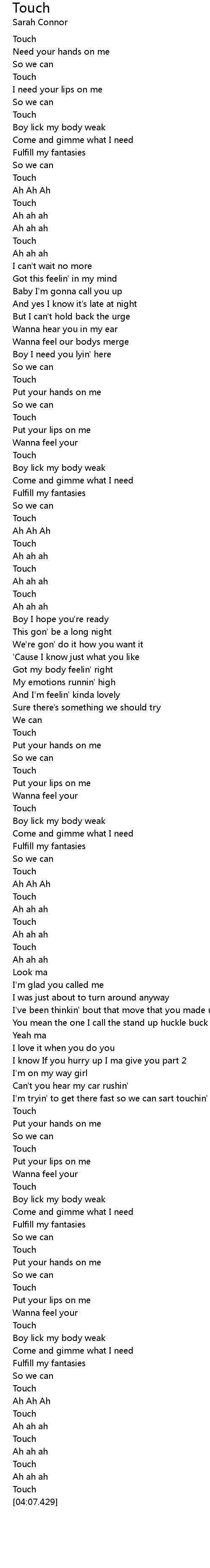 | [03:02.190] | I'm tryin' to get there fast so we can sart touchin' |