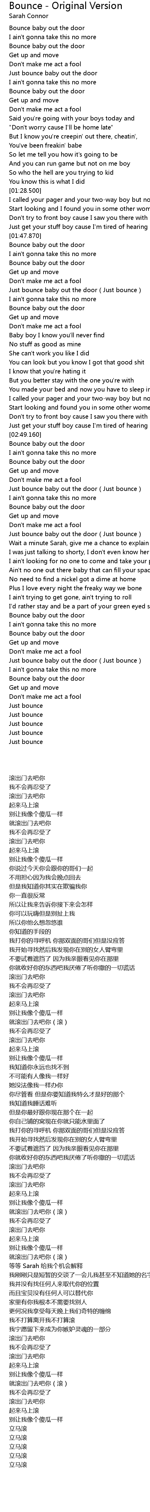 | [02:59.600] | Just bounce baby out the door Just bounce |