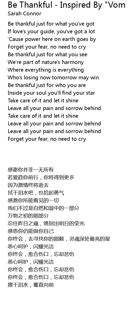 Be thankful just for what you see |