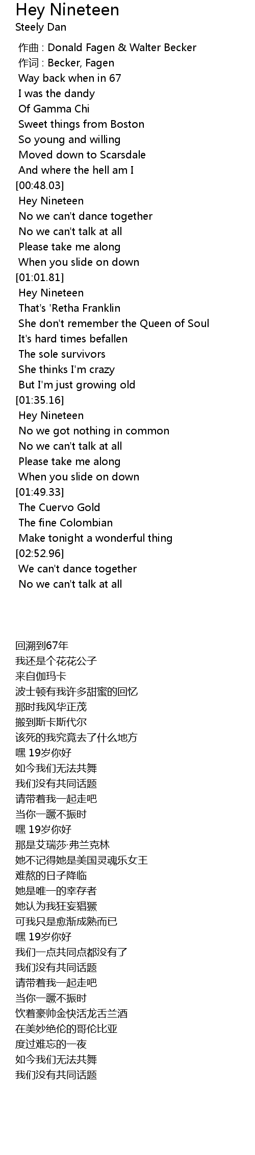 | [00:00.00] | 作曲 : Donald Fagen & Walter Becker |
