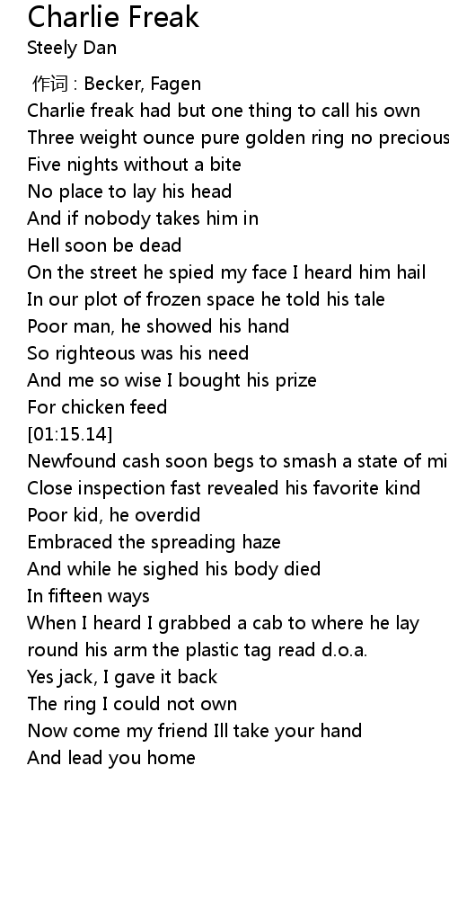 | [00:08.25] | Charlie freak had but one thing to call his own |