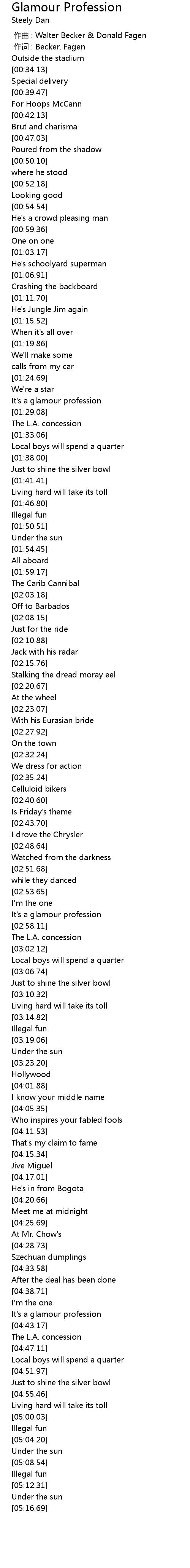 | [00:00.00] | zuo qu : Walter Becker Donald Fagen |