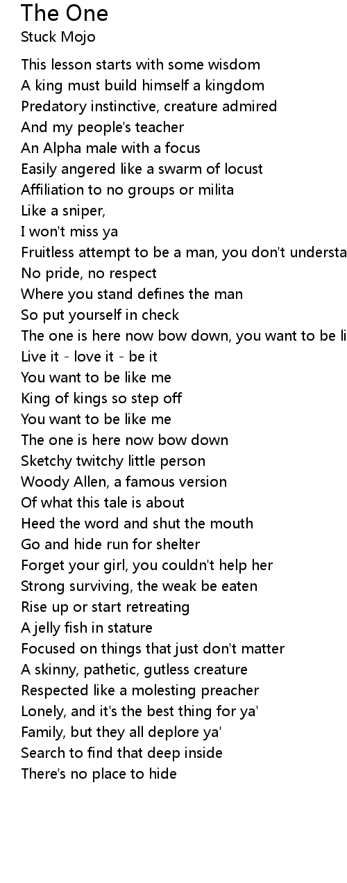 The one is here now bow down, you want to be like me |