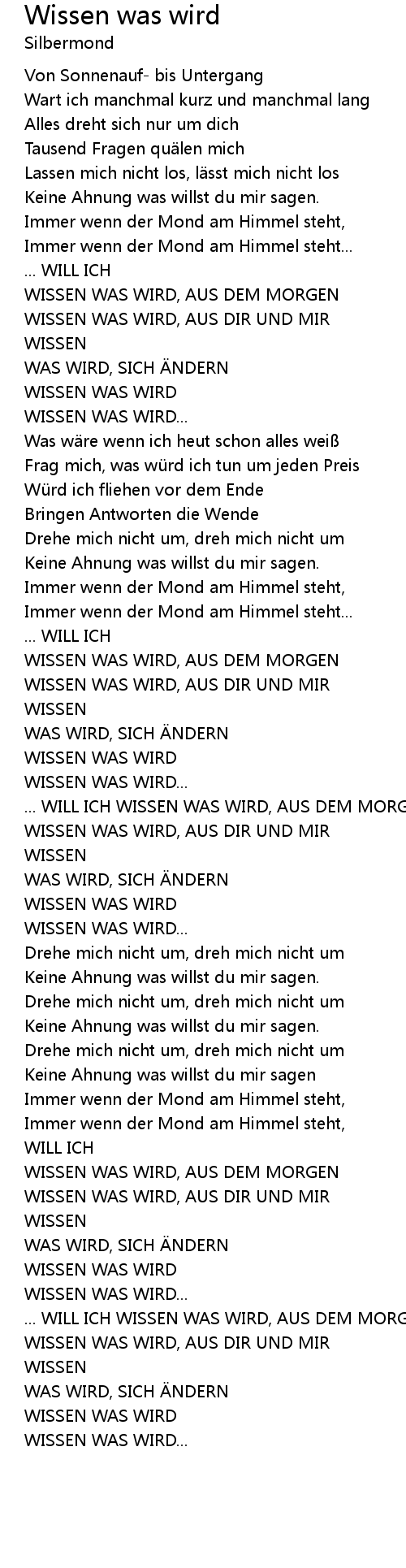 | [02:24.88] | ... WILL ICH WISSEN WAS WIRD, AUS DEM MORGEN |