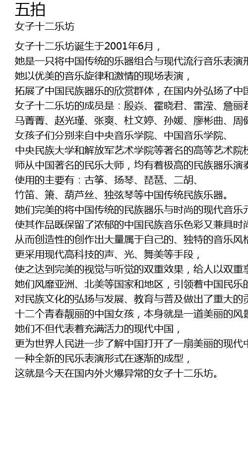 | 女子十二乐坊诞生于2001年6月, | |